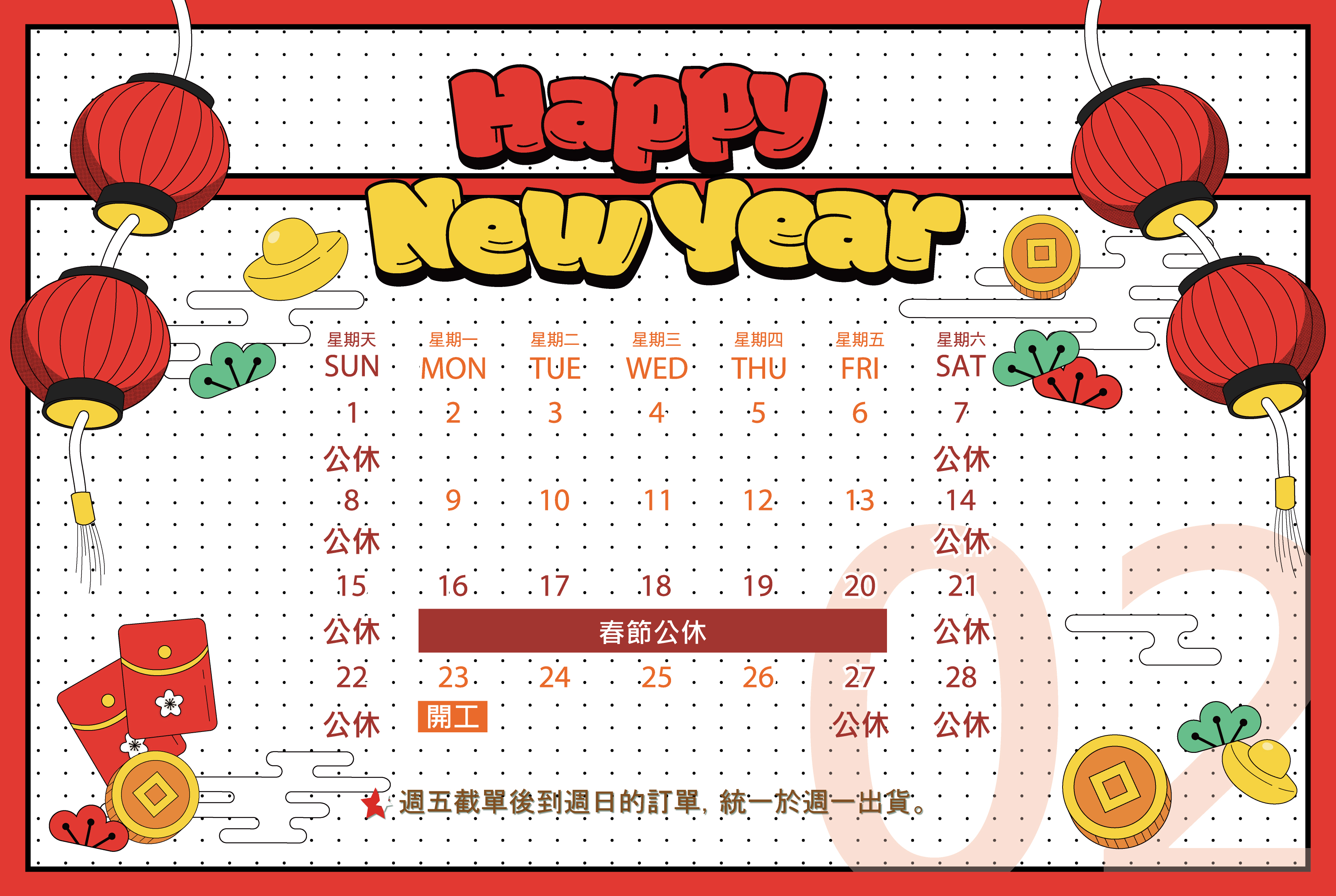 ◆2026年02月份 營業日期&休假日