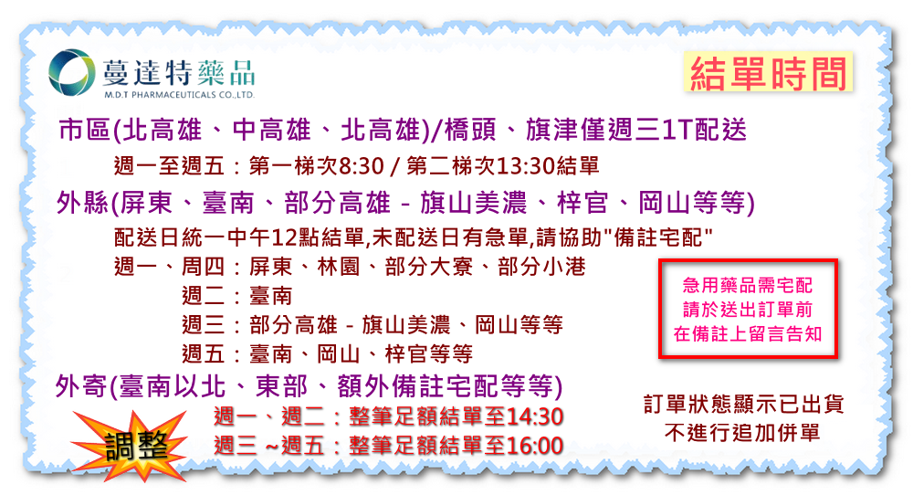 12月份針對【宅配】結單時間有進行調整,請留意