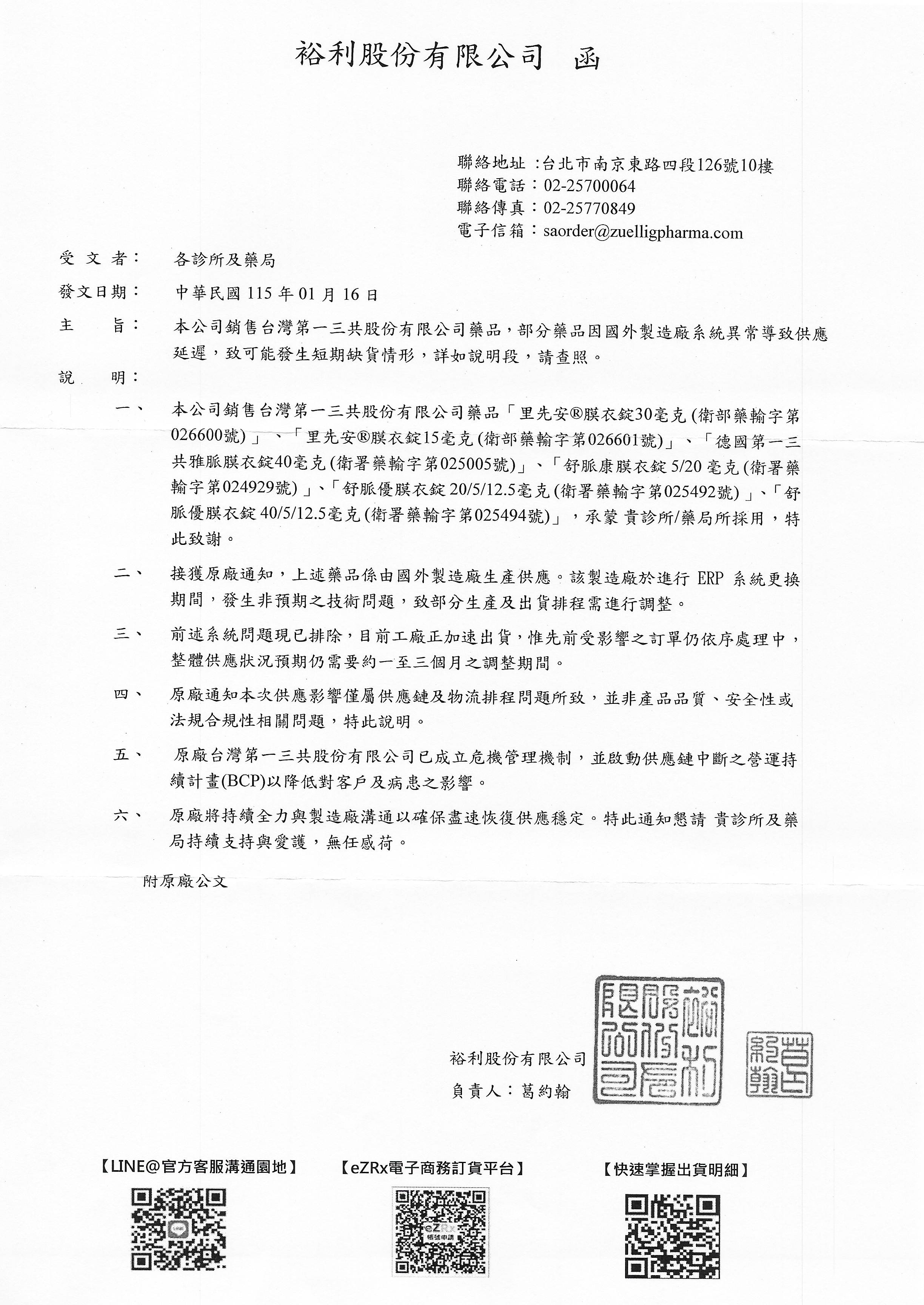【缺貨情況-第一三共】里先安+舒脈康+舒脈優+雅脈