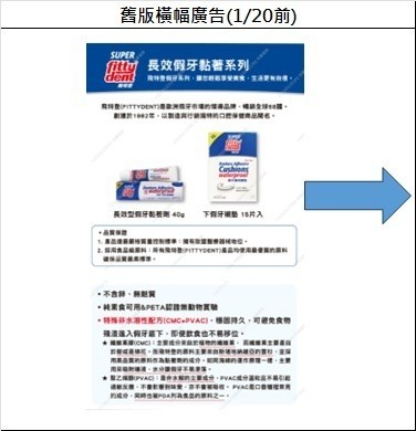 •假牙黏著劑/假牙襯墊/假牙清潔錠,此三項產品的廣字號將於 1/27(一) 前到期